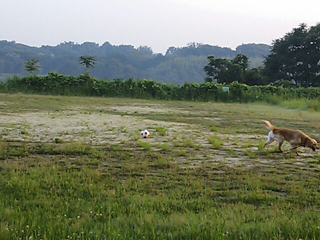 今日は 朝 バルサンを焚きがてら、河原へかめを連れて行き、サッカ-