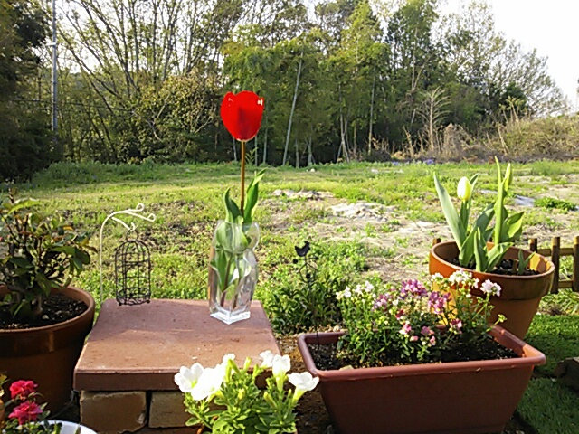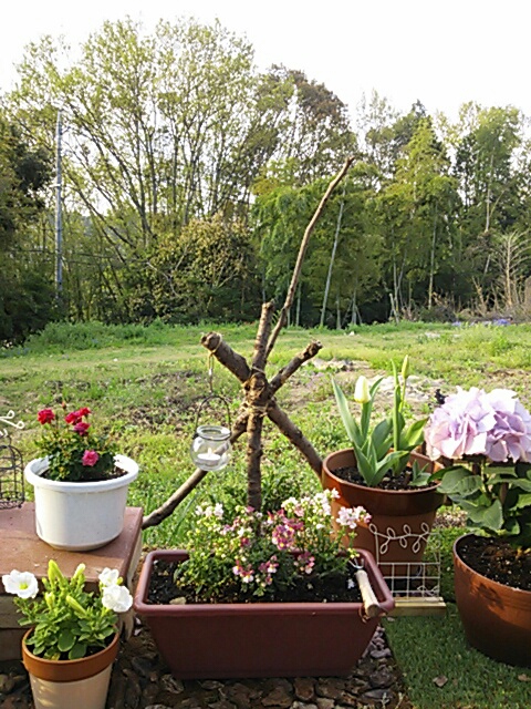明るいのでキャンドルの灯りがほとんど見えない。 日が暮れたら灯してみよう。 花ばかりでくどくなってきていたので、こんなものがあるのもいいかな。何かを作るのは、楽しい。 タダだしね。