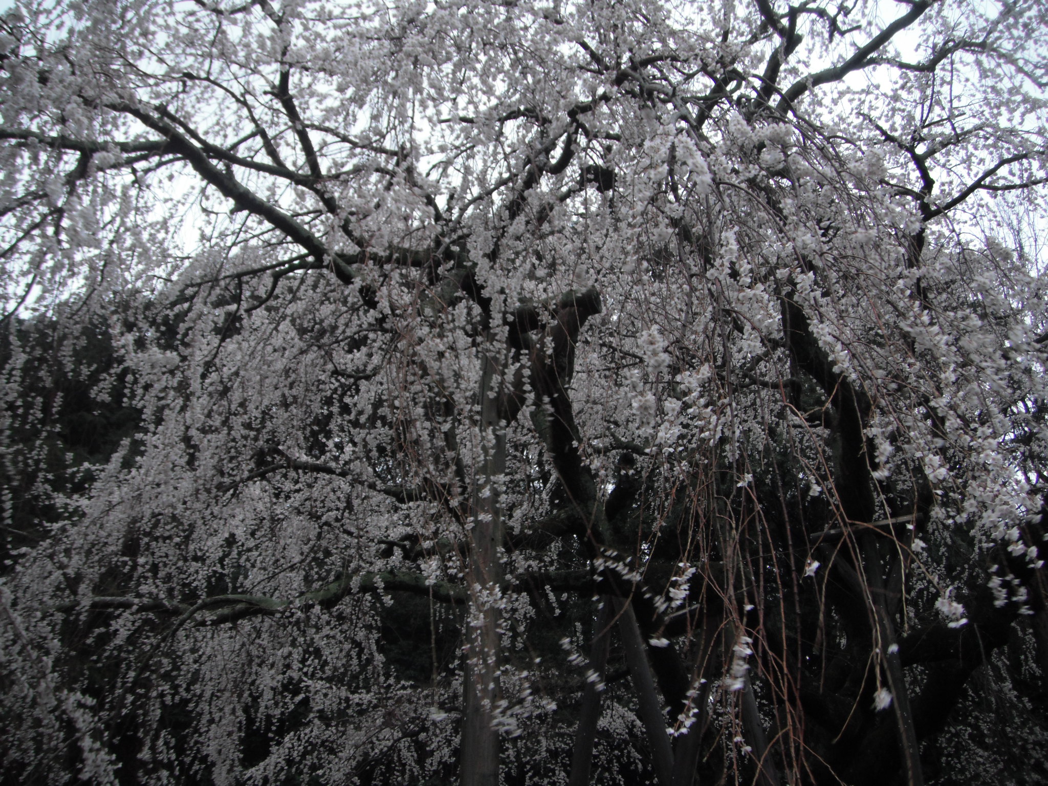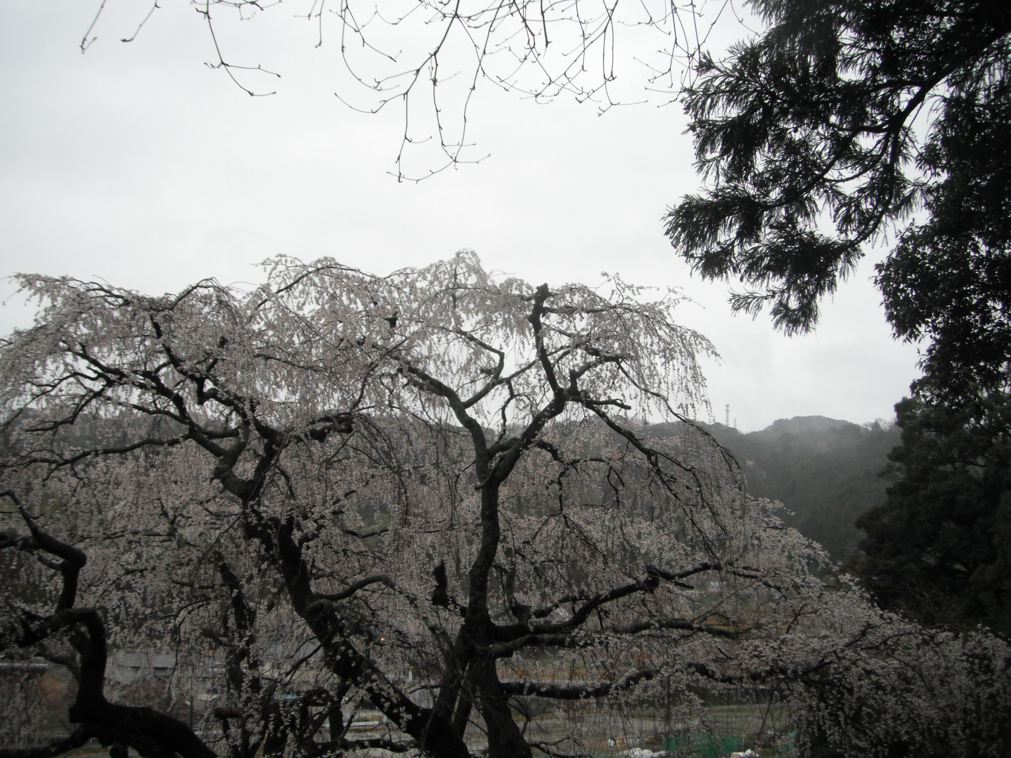 で、散歩の後、しだれ桜を見に行った。と言うか、雨の中のしだれ桜も撮ったらいいかと思い。