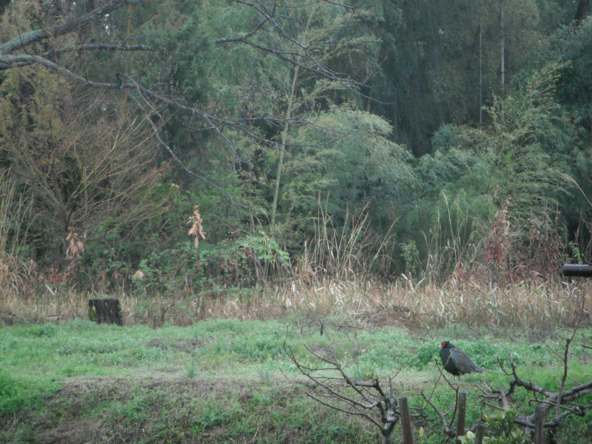 で そのどんぐりの写真を撮っておこうとデジカメを持っていったら、畑に佇むキジがいたので、そっと撮ってみた。