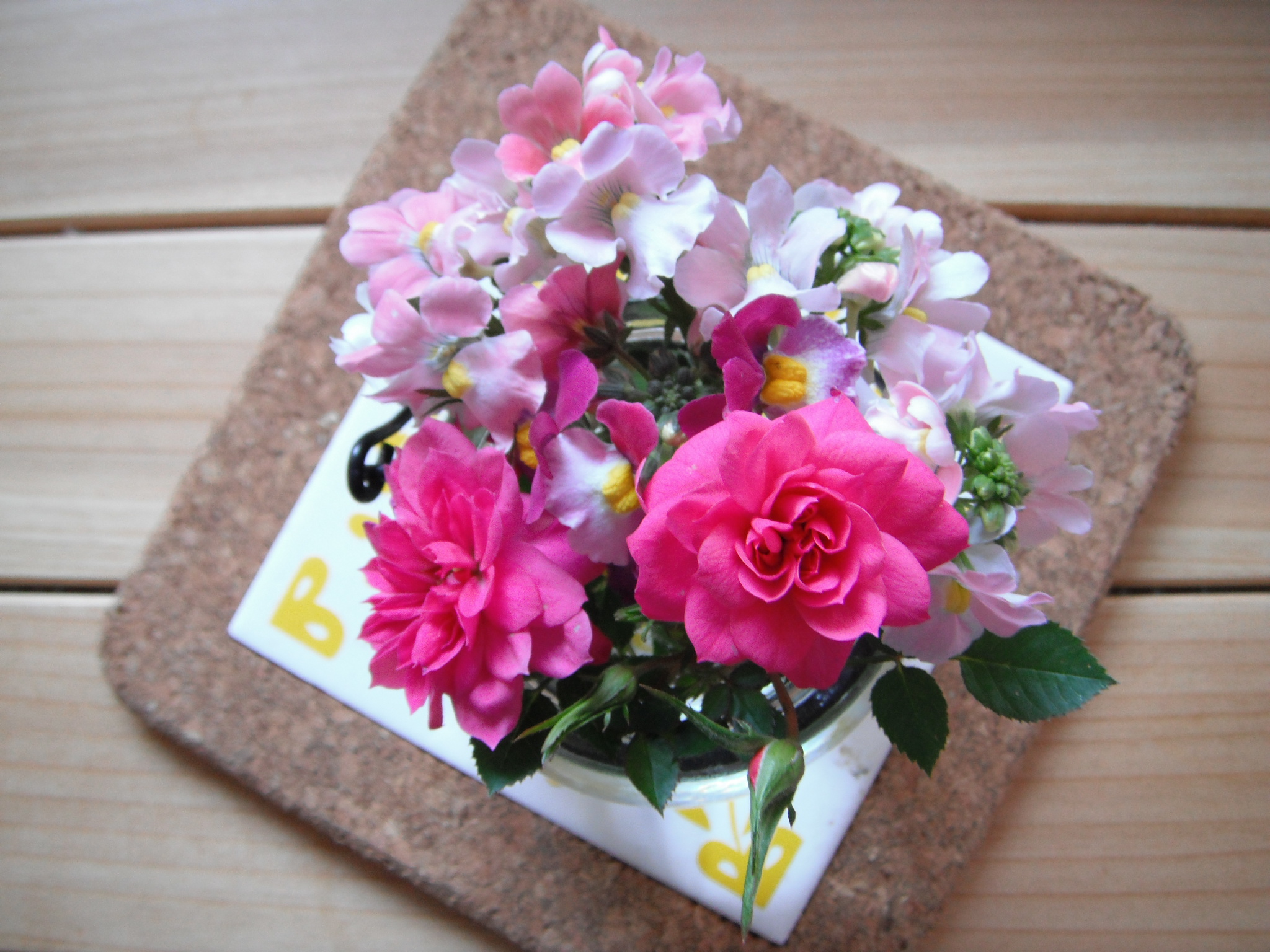 毎日 気になるどんぐりの成長。。。 もう一つ、芽がしっかり出てきた。 ちょっと引っ張ってみたけど、抜けはしない。 ほぼ同じ日に発芽するということ、、、植物ってすごいな-。 ネメシアやミニバラも、元気いっぱいで次々と花を咲かせている。 外でしか見れないのはもったいないので、ちょん切って家の中でも楽しんでいる。