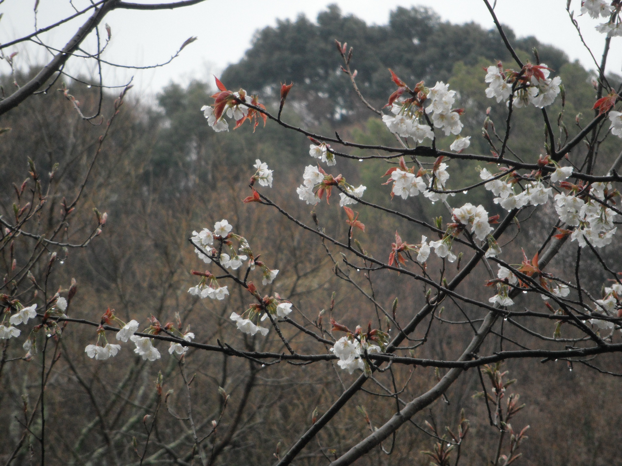 ソメイヨシノよりも、こういう葉と花が同じに見れる桜がいいなと思う。 ソメイヨシノでも、もちろんいいんだけど。