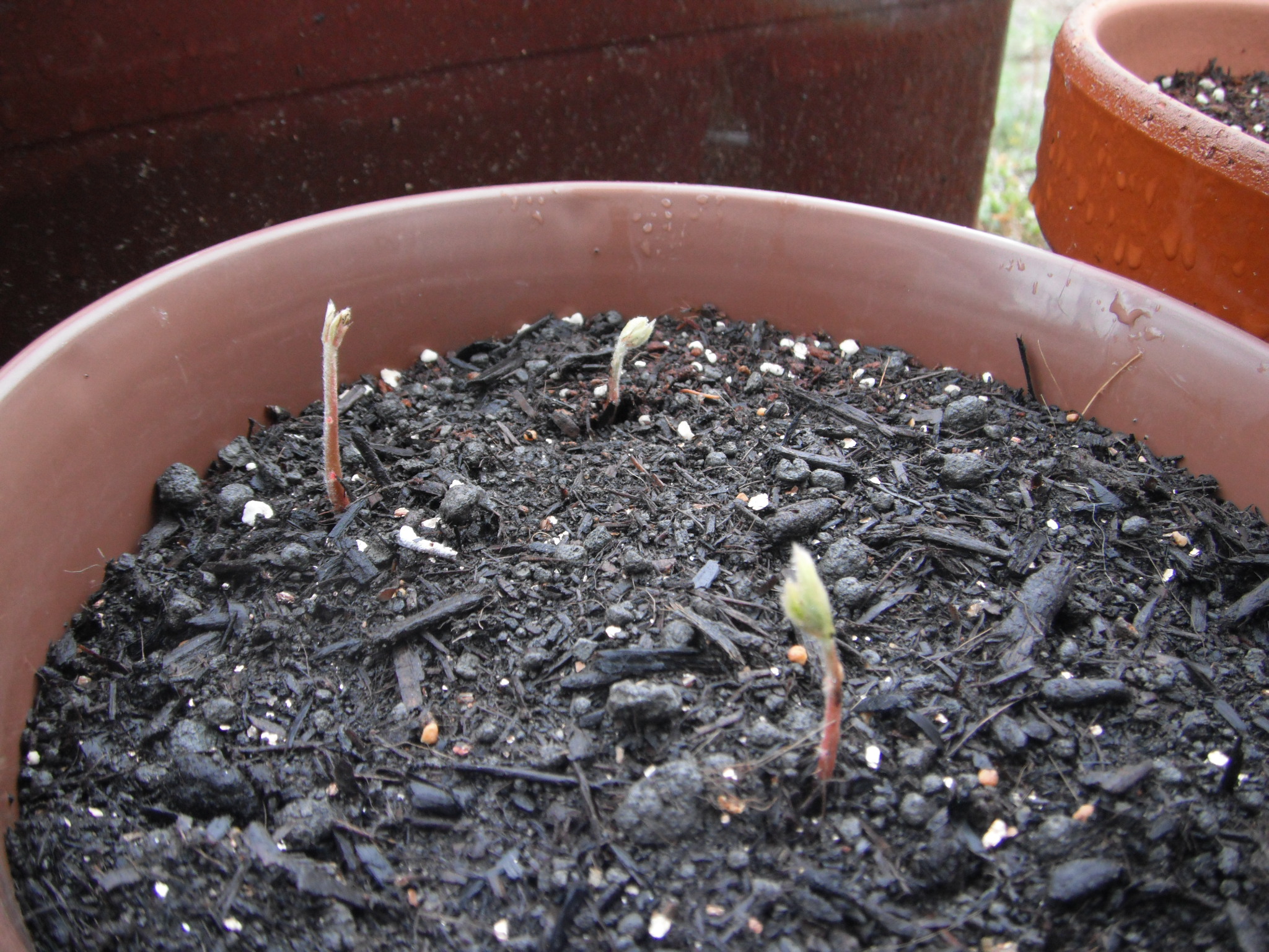 みっつ 根っこが出てきていたどんぐりを植えて、そのうちの二つが無事 発芽!!