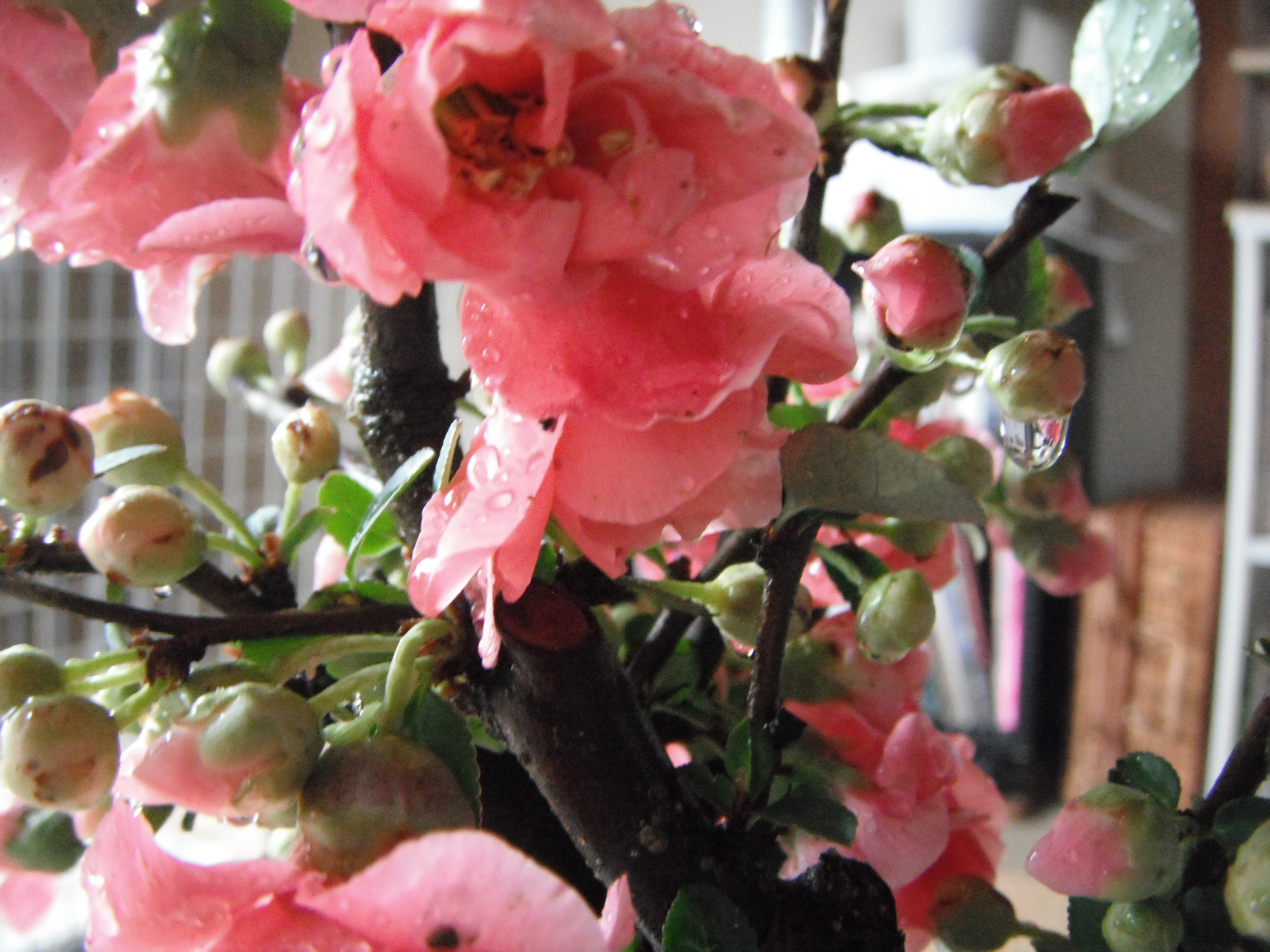 手入れの仕方がいまいち謎だが、咲き終わったボケの花をちょん切ってみた。それでもまだたくさんの蕾。