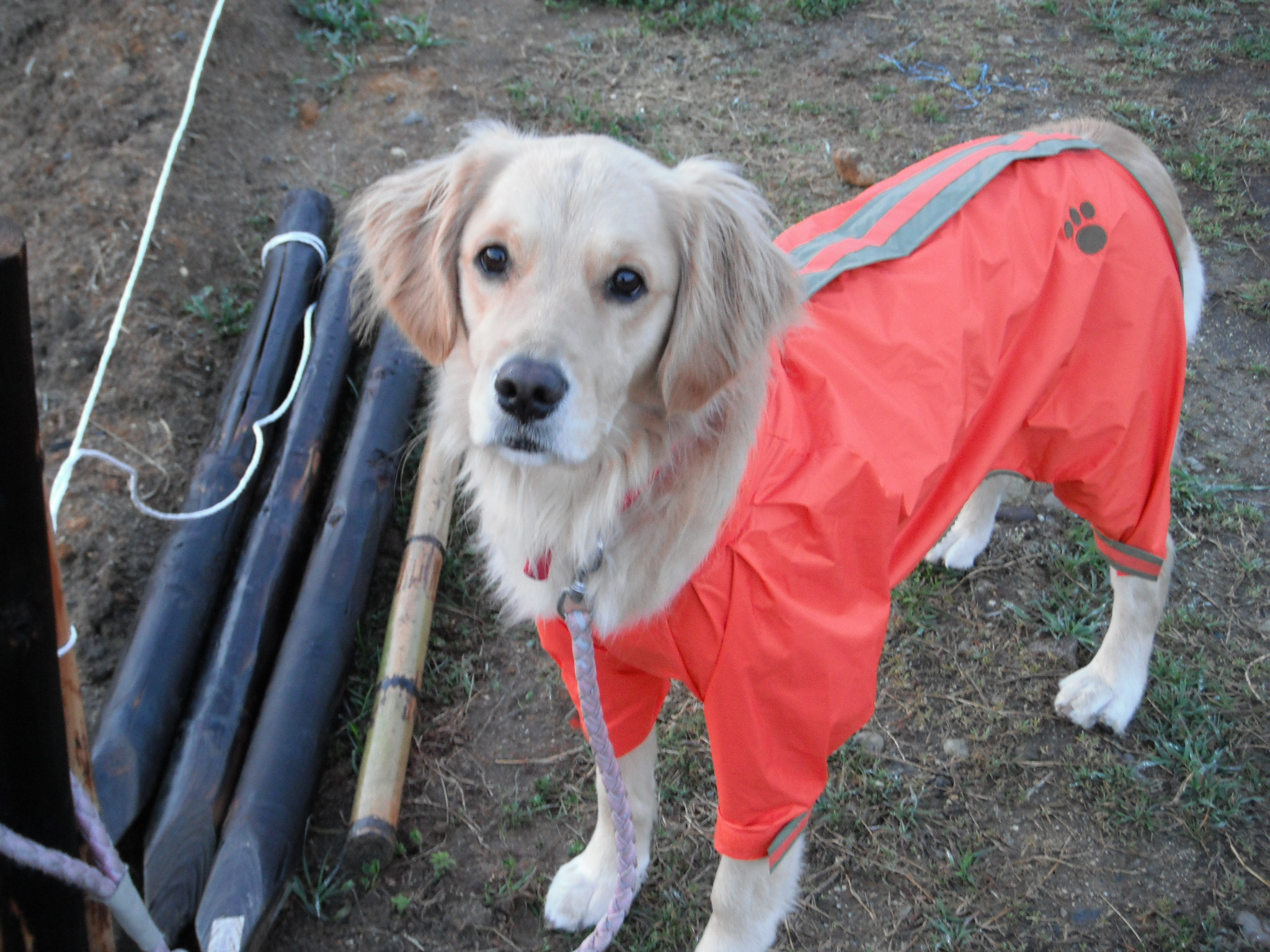 昨日は結局 一日 雨が降り続いていた。 早くあがるかと思いきや。。。 かめのカッパを新たにもう一枚買った。 今までのと同じタイプで、派手な橙色で、まるでレスキュードッグのよう