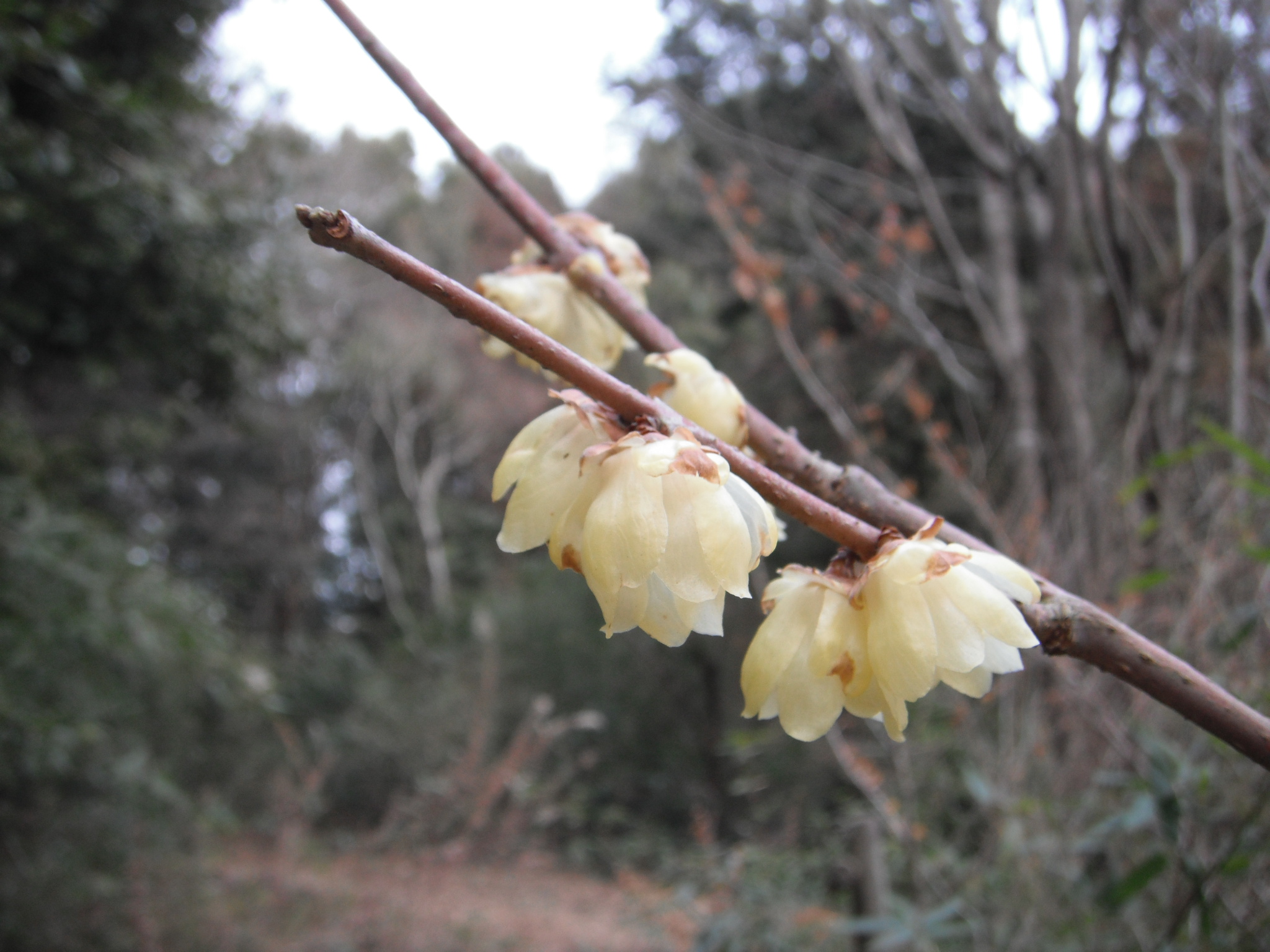 ロウバイ、近づいてついにおいをかぎたくなる。 いいにおいがする。 鼻があまりよくない私でも、結構ちゃんとにおうから、正常な人だともっと強烈ににおうのだろうか? その少し手前で、はっきりとは見えなかったけど、多分猿らしき動物がガサゴソしていた。