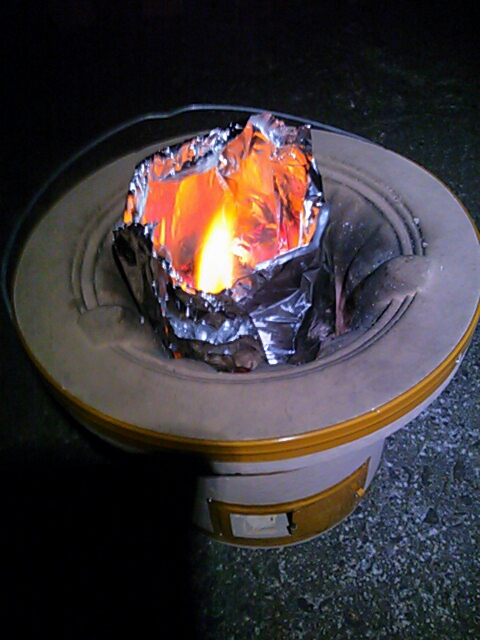 土曜の夜、ちび七輪で炭火焼きを軽くしたのだが、その時の火熾しの様子。。。。