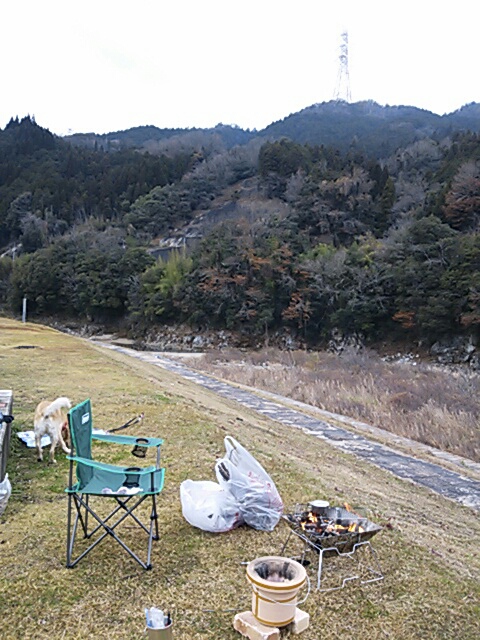 かめが、ワンワン 吠えてうるさくて困った! 焚き火しているから、少し離れたところに居させたのだけど、もううるさいうるさい。 離れたところだけど、先客の方もいたし、自分もゆっくりできないので、ちょっと散歩してかめは車へ。。。 困ったもんだ~。。。