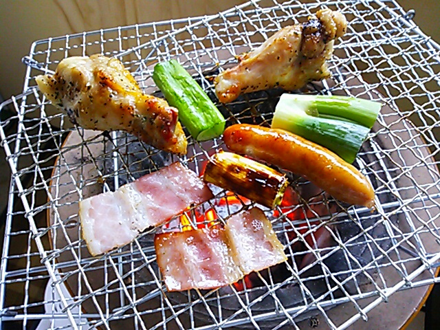 小さな炭ひとつでも、ちゃんとウインナーは焼けておいしかった。 時間はかかるけれど、ゆっくり焼いてそれに合わせて飲めてよかった。