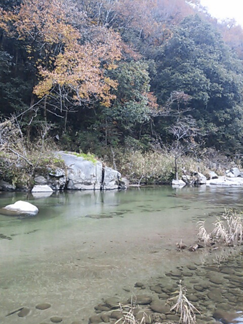 里の辺りの紅葉が鮮やか。 寒いけど まあ順調に足助まで。 もう渋滞もないぞ! やっぱりこの道は走ってて楽しい。