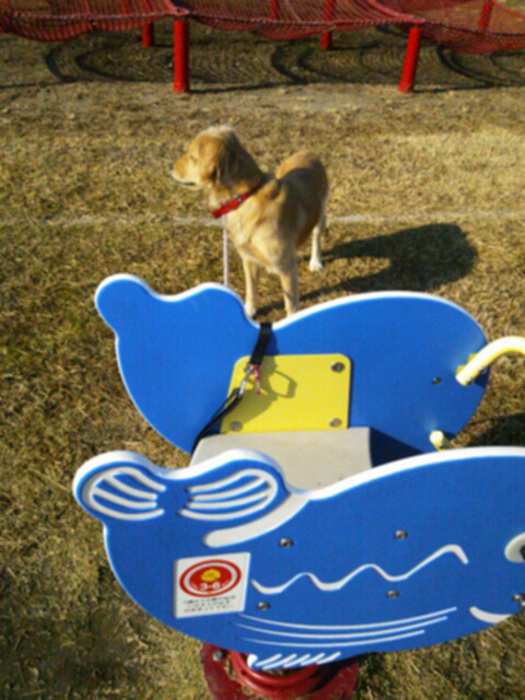 けどまあ、 いい天気なんで、かめっちを車に乗せて 川のそばの広場へ。 ほんとに悔しいほどのいい天気~。。。。 かめはうれしそうに わふわふしていた。 外は気持ちいいね! 公園にある この ビヨヨヨーンな遊具のそばで ビヨヨヨーンと揺らすと かめはめちゃめちゃ怖がるので面白い。