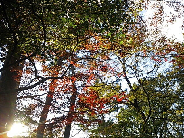 朝日を浴びて、公園の木々がとてもきれいで、つい何枚も写真を撮ってしまった。