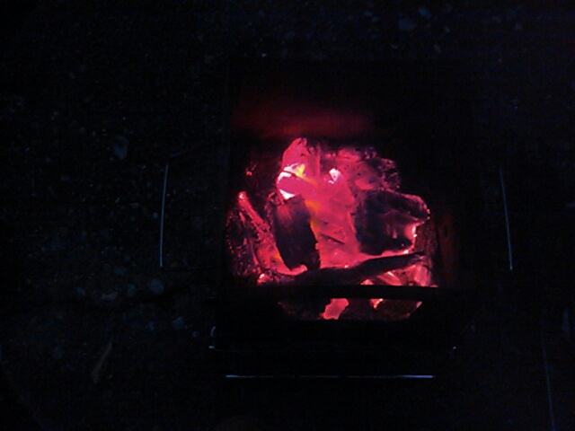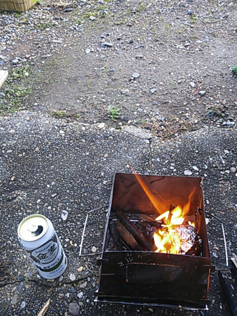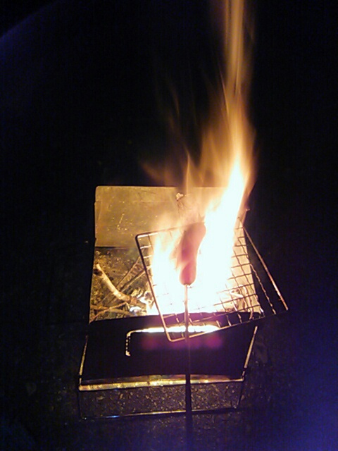 もし誰かが何してるの?と来た場合に備えて、焚き火 ではなく、バーベキューです と答えることにし、ウインナーなんぞを直火で焼いてみた。 やっぱり焚き火はいいな。 あの独特のにおいとか、火が上手に大きくなっていくのとか、パチパチはぜる音とか、、、、