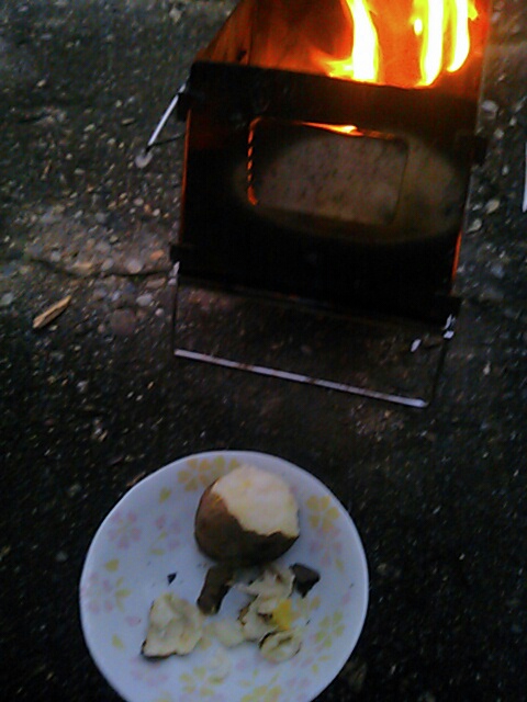 そして昨日は、100均で買ってきておいた炭を使った。 じゃがいもをアルミホイルでくるんだものをいれて、炭をそばに置いておき、その炭火の上でウインナーを焼いたみたら、、、