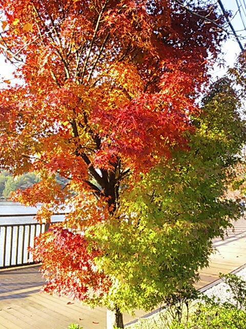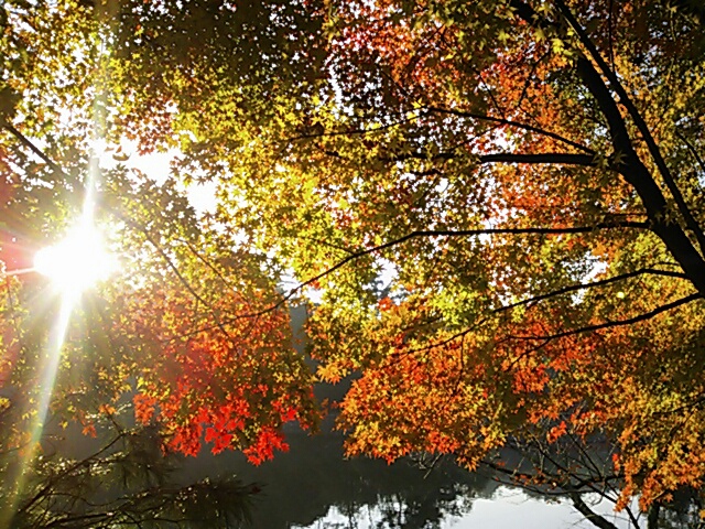 かなり大きな池のようだ。 まわりが遊歩道になってて散歩にちょうどいい。 水辺の風景もいいものだ。 そして紅葉もとてもきれいだった。 朝日と紅葉ってあんまり見ないからなー。