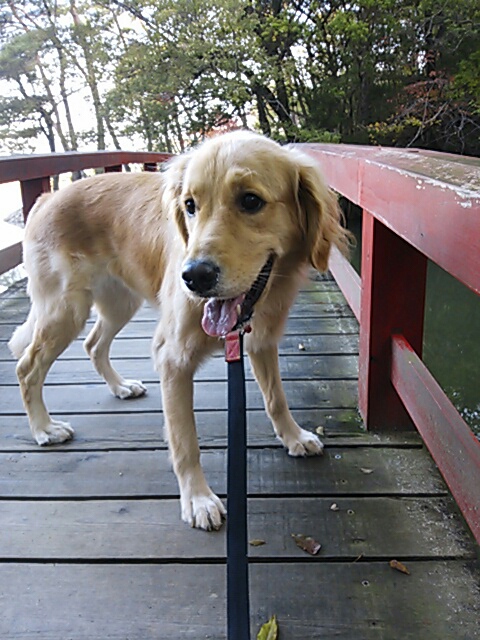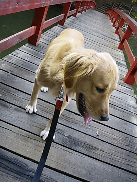 遊歩道を歩いて行ったけど、ぽつぽつと小さな橋があり、、、、 結構ビビリなかめは、嫌っ怖いから嫌っっ とおすわりしてふんぞり返って必死に抵抗していたが、引っ張って引っ張ってなんとか渡らせた。 カツカツカツカツっっと音を立て、ぷるぷる震えながら、おびえて這いつくばるようにへなへなな格好で橋を歩いていたので、マジで笑えた。