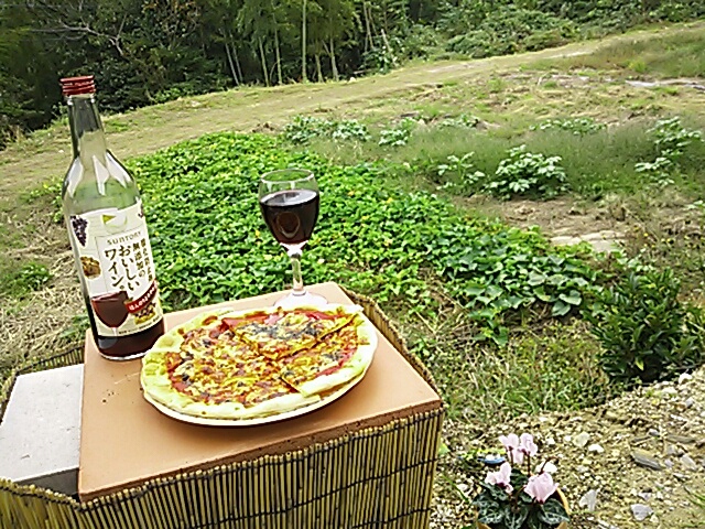 そしてカリッと焼き上がったピザは、とてもとても美味しそう!!! 外で食べた。