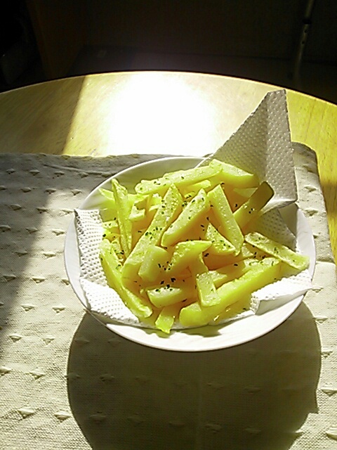 今度はオーブンシートを敷いて、もう少し強めでやってみようかな。 マックのポテトのようにはサクサクッとはいかないけれど、でも家でのんびりくつろぎながらこれを食べれるのはとてもいい。 マックのポテトって相当な量の塩がまぶしてあるのだねえ。。
