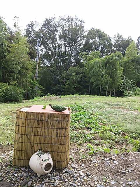 ↑ 昨日の午前中はまだ天気がよく、ホームセンターでコンクリブロックを買ってきて テーブルをこしらえた。 これなら台風がきても大丈夫だろうと。