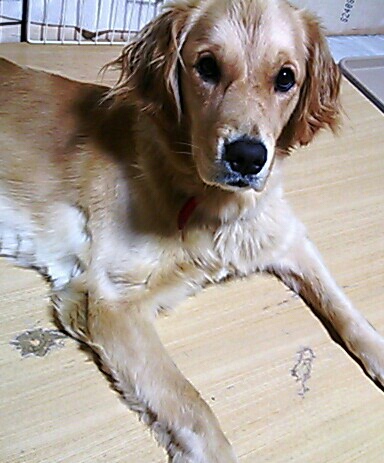 まだひょろりとした仔犬で、毛が短めだったから、ラブですか?と聞いてしまったけど、ゴールデンとのこと。 手足がひょろりと長くてかわいかった。 だんなさんのほうがわしわしと触ってくれたので、かめもウハウハ喜んでいた。