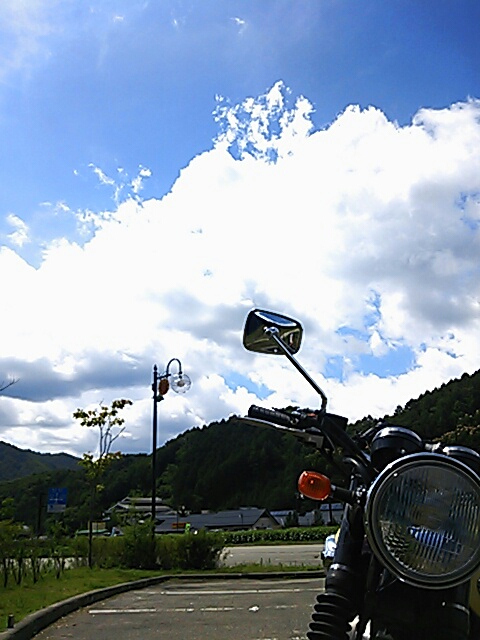 汗かきながら、バイクの仕度をして出発。 もう昼も過ぎていたので、これから山方面へ向かう人はそんなにはいなくてよかった。 平谷まで走り、道の駅でコーヒーを飲んで、また帰ってきた。
