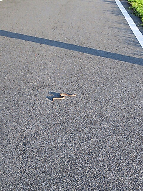 ヘビ、、茶色いの、、マムシ?? 生きてます。。。そ~っと端っこを避けて歩いていきました。。気持ち悪いよー。 うちはまだへびとかは見かけないからいいけど、、 こんなん すぐそばで見たらと思うとゾッとする。。