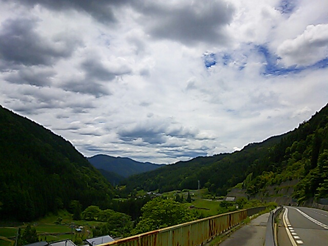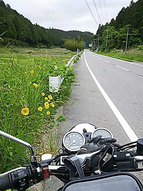一時半出発。 走り出すと、涼しい。。。 うーん 涼し過ぎだー(^^;; ありゃ。。。 薄いインナーも着るくらいでよかったかも。 街中は暑くても、バイクで山のほうを走ると涼しいのだなあ、、、