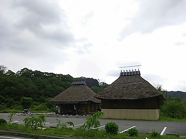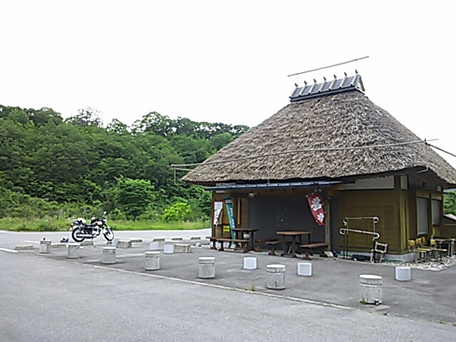 茅葺の建物がふたつあるところ。 お店の、涼風の里は閉まっていた。 向かいの自販機でコーヒーを買ってくる。 ホットがあってよかった。