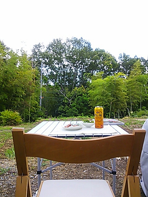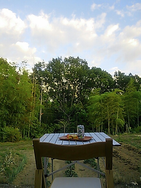うちの前は畑なので、人や車は通らないし、まわりもちょうど見えない場所にテーブルが置けていい。 夕方のさわやかな風が心地よかった。