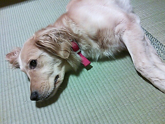 かめが4時過ぎまで寝てくれるようになってきた! 昨日は夕方 小雨で、夜はもうカッパを着せてオシッコに連れて行くのも面倒だったので、そのまま寝たが、今朝 目が覚めたら外はもう明るくて4時過ぎていた。 これまで3時や3時半に起こされて悲惨だったけど、4時まで眠れると違うねー。 かめとも気分良く、散歩に行ける。