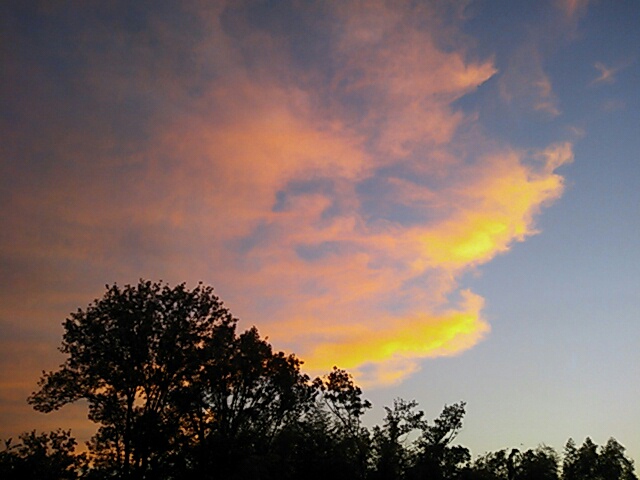 家に戻ってくる頃、西の青空がきれいなんだけど、どこか妙な色だった。 明る過ぎて朝の空みたいで、ちょっと不気味でもあり。 その後 しばらく外で眺めていたけど、その輝き?は少ししたら落ち着いた。 そういう自然の景色のいい時というのは わずかな時間だ。