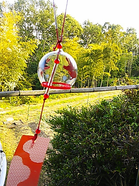 散歩が済んで、洗濯ものたたんで、、、やっとこせ座れた~。 仕事のがよっぽど楽というか、動かないね。 おやつに買ってきたビスケットとコーヒー。 風鈴を吊るした。 時たま、チリーンチリーン と、きれいな音。 わ~、いいなあ♪ こういったものが、じつによく合ううちの借家。。。
