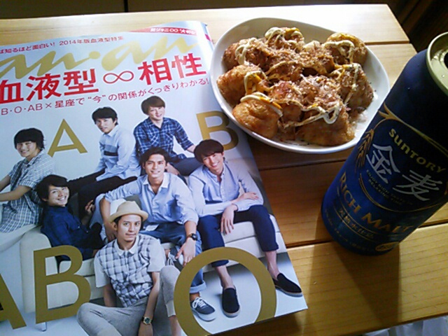 これまでのようにそんなに暑くはなく、窓を開けて扇風機でいいほど。 いいな! 冷凍タコ焼きをチンして、青金麦とで、たこ焼きランチ。 細小さ~いタコも一応入ってて、まま美味しく。 22個入りだったので、半分食べた。